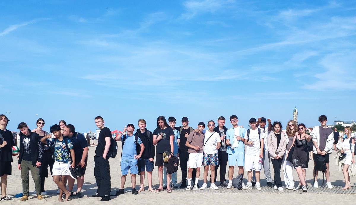 Die 10b ist in ihrer Abschlussprojektwoche einen Tag nach Warnemünde gefahren. Ein letztes gemeinsames Erlebnis mit Zugfahren, Stunden am sonnigen Strand, der Warnemünder Woche, schwimmen in der kalten Ostsee und Spiele am Strand!